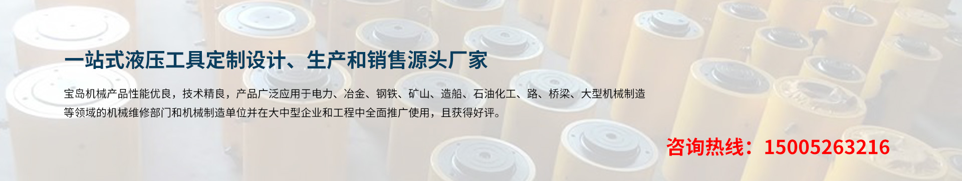 泰州市寶島機(jī)械制造有限公司位于長江三角洲著名的工具制造基地 -- 江蘇泰州。京滬、寧通高速公路,新長、寧啟鐵路貫穿全境。交通運(yùn)輸條件十分便利。 BDYYJX寶島機(jī)械制造公司專業(yè)生千斤頂、液壓千斤頂、電動(dòng)液壓千斤頂、大噸位千斤頂、薄型千斤頂、橋梁千斤頂、同步液壓千斤頂、空心千斤頂、自鎖式千斤頂;液壓螺母、液壓螺栓拉伸器;液壓扳手、電動(dòng)(手動(dòng))液壓扳手;液壓彎管機(jī)、電動(dòng)(手動(dòng))液壓彎管機(jī)、液壓彎排機(jī);試壓泵、電動(dòng)試壓泵;軸承加熱器、微電腦軸承加熱器、感應(yīng)拆卸器;液壓拉馬(拔輪器)、電動(dòng)小車式升降液壓拉馬;螺帽破切器、液壓沖孔機(jī)、液壓平彎機(jī)、液壓開孔器、母線加工機(jī)、電動(dòng)液壓升降(平臺(tái))機(jī)等液壓工具。 是國內(nèi)液壓機(jī)電業(yè)配套的綜合性企業(yè),服務(wù)于國內(nèi)各類大中型企業(yè)。 寶島機(jī)械產(chǎn)品性能優(yōu)良,技術(shù)精良,產(chǎn)品廣泛應(yīng)用于電力、冶金、鋼鐵、礦山、造船、石油化工、路、橋梁、大型機(jī)械制造等領(lǐng)域的機(jī)械維修部門和機(jī)···